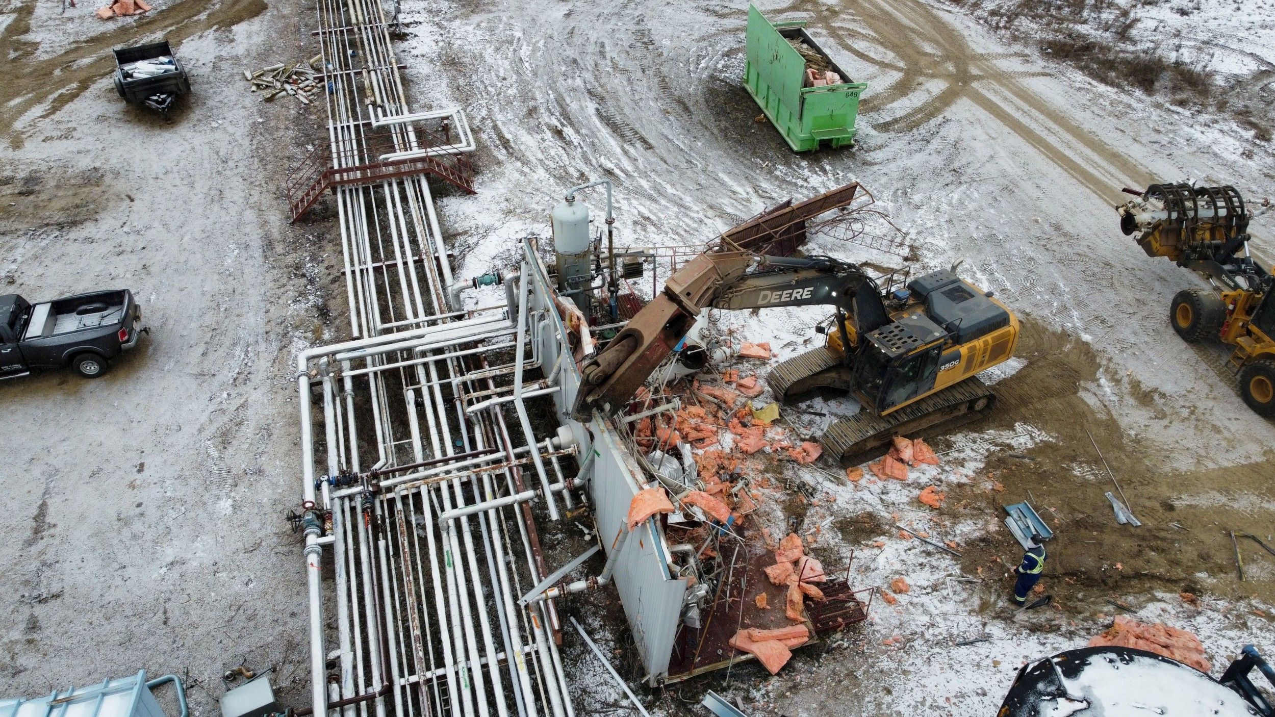 The first phase focused on removing hydrocarbons and verifying the facility was safe to demolish.